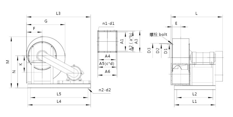| NO | D1 | D2 | D3 | 螺栓 | 个数 | A1 | A2 | A3 | A4 | A5 | A6 | a*b | c*d | n1-d1 |